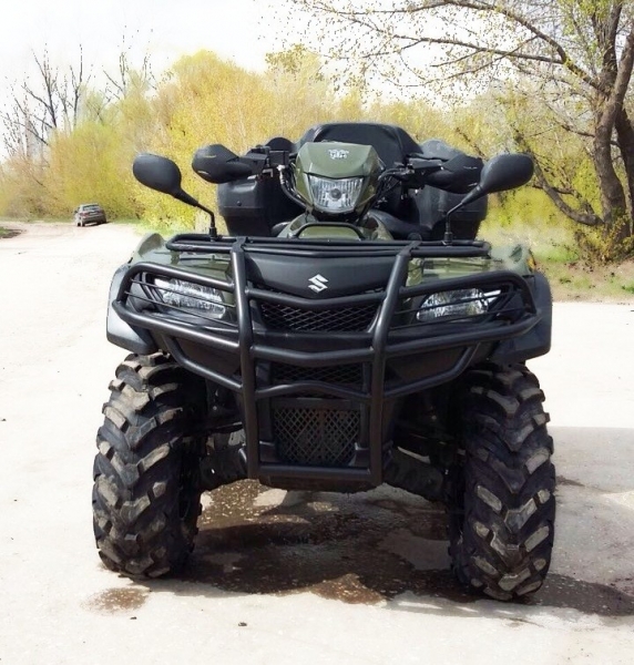 Покрыт порошковой краской. Стальная труба, толщина 2см. Отлично украсит и одновременно защитит Suzuki KinQuad.