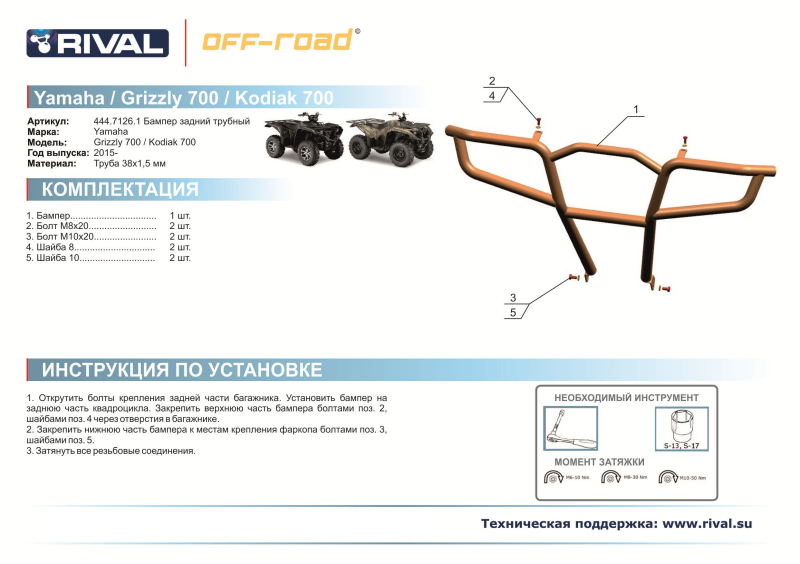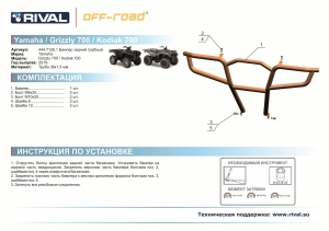 Пока нет вопросов к товару Бампер задний Rival для Yamaha Grizzly 700 2015+ 444.7126.1