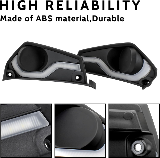- Встроенный дневной свет в крышке противотуманной фары, с высококачественным светодиодом, ярче галогенного света и энергосберегающий, также может переключаться в режим указателя поворота, быстро рассеивает тепло, работает в любых погодных условиях.