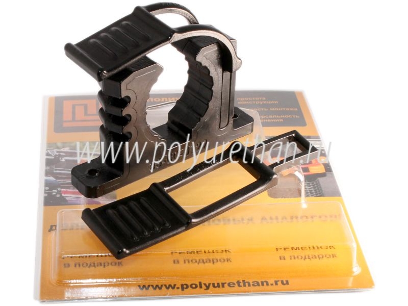 Рассчитан для крепления и хранения фонаря, лопаты и прочих инструментов диаметром от 33 до 40 мм, а также для фиксации труб и шлангов. Крепится двумя болтами (не поставляются в комплекте).
