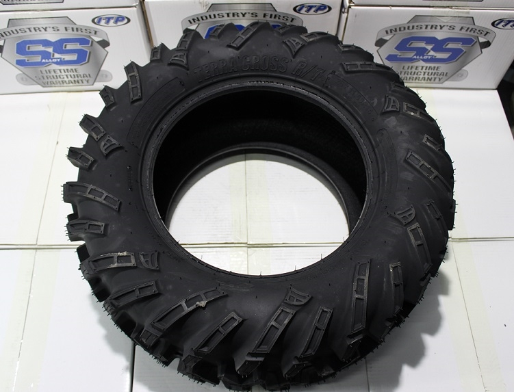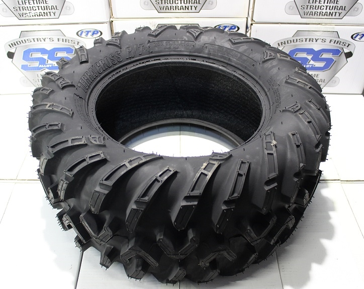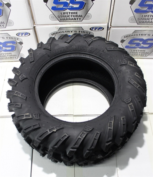 14 дюймовые шины TERRA CROSS R/T специально разрабатывались для UTV, став новым стандартом во внедорожных шинах для этой техники. Позже они успешно прижились и на квадроциклах, благодаря своим отличным характеристикам. Появились 12 дюймовые модели. Эти шины, так же как и Mud Lite XTR является компромиссными шинами (для всех типов ландшафта). Но, если XTR склонен больше к очень суровым и экстремальным грязевым условиям, то TERRA CROSS R/T ближе к скоростным. Они отлично себя ведут на грунте, гравии, песке, укатанному снегу, позволяя двигаться с большими максимальными скоростями, не испытывая никаких трудностей. Однако в грязи, благодаря высокотехнологичному протектору и грунтозацепам, TERRA CROSS R/T может поспорить с большинством грязевых шин. Опоясывающие всю шину боковые грунтозацепы, являются превосходной защитой боковин, и позволяют шине двигаться без проблем по глубоким колеям с торчащими корнями, по скалистой и каменистой местности.