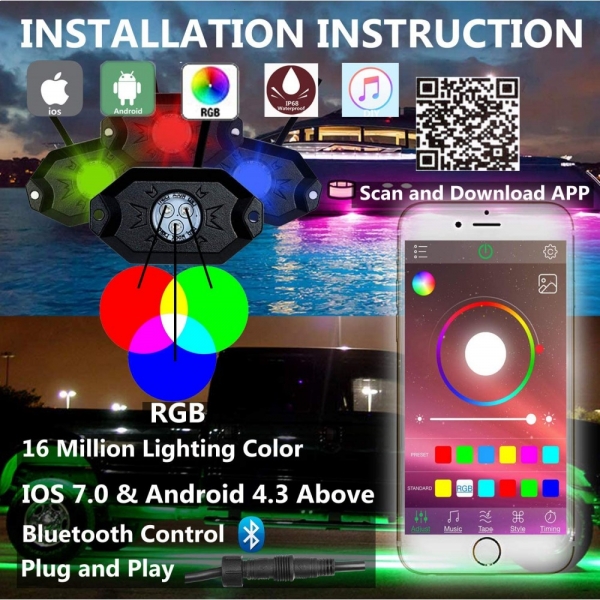 Пока нет вопросов к товару Светодиодная RGB подсветка днища /кузова UTV /квадроцикла /внедорожника /катера Led Rock Light ZS10086 ZS10086