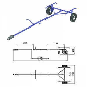 Трейлер предназначен для перевозки надувных лодок длиной до 3,8 м. весом до 150 кг. Трейлер изготовлен из черной стали, покрашенной порошковой краской.
